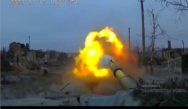ロシアの最新式T-90M 戦車に搭載されたカメラが、ドネツクの瓦礫の街マリンカMarinka in Donetsを通過する様子を記録し、2023年1月22日投稿された。撮影時期は、2023年1月13日、午前10時41分とある。戦車は部分的に立っている建物に近づくと停止し、ウクライナ軍が戦闘位置として使用している場合に備えて、複数のラウンド(砲弾)を発射します。その間、爆発がT-90の右前のすぐそばで起きたのが見ることができます.これが敵対的なウクライナの砲撃によるものなのか、それともビデオのフレーム外から別のロシア軍ユニットが発砲した結果なのかは明らかではありません。記録映像 ウクライナで捕獲された際の映像