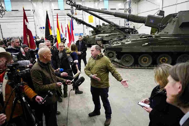 英国がチャレンジャー 2 戦車を送ることを先週発表して以来、ベルリンは Leopard 2 戦車を供給するか、少なくともポーランドのような他の国が自国の在庫からドイツ製の Leopard を配達する道を切り開くという要求に直面している。写真は、2023 年 1 月 19 日木曜日、エストニアのタパ軍事キャンプを訪問中にメディアに戦車を説明する英国のベン・ウォレス国防長官。英文記事