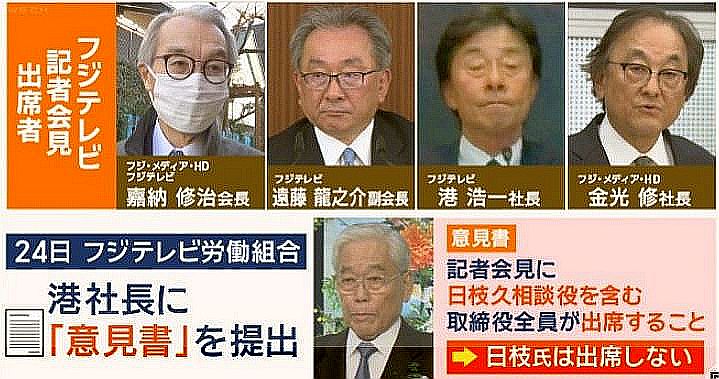 社会通念は、裁判でも尊重される判断基準だ。会見で色々な言い回し、言い訳をしているが、一貫して内々で処理し、うやむやに持って行こうとしたのは明確だ。公益より自社利益優先の体質が透けて見えた。ジャニーズの問題も同じで、長年人権侵害の存在を知りつつ業界の守りを優先し、どこのメディアも問題化しなかった。結局、BBCの記事で浮上する結果になった。BBC記事:フジテレビの会長と社長が引責辞任、中居氏の性的スキャンダルへの対応めぐり:、、、今回も、総務大臣は官僚の作文を棒読みするだけだ。この方、国会では居眠りで有名なポンコツ政治屋。すでに港浩一社長は辞任を表明したが、28日夜、取材に応じたフジテレビの遠藤龍之介副会長は、3月末をめどに提出される第三者委員会の調査結果をうけて、副会長を辞任する意向を明らかにした。 また「週刊文春」は、フジテレビ社員が関与したとする去年12月の記事について、28日までに内容を一部訂正しているが、関与が疑われた社員は、すでにフジTVに解雇処分されているのだ、、。 (2025年1月28日放送「news zero」より)映像記事 過去ブログ:2025年1月地に落ちた日本のモラルを叩き直せ!:、、、フジTV、芸能界、政界、放送界内には、隠している、まずい事実が相当ありそうだ。裏で反社と天下りが暗躍か、、、。参考映像・これで全てが分かるフジの裏事情と今後の予測:【緊急対談】「フジテレビに上納文化はあります」日枝久が作った“歪な構造”を元フジアナウンサー・長谷川豊が猛烈批判;
