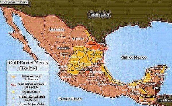 どうやらシナロアは、近年厳しくなったメキシコ経由米国への密輸を避け、カリブ海ルートで世界中に麻薬を流していたようだ。組織のつながりや麻薬の流れは複雑で、この判明したルートも組織のルートの一部でしかない。シナロアが南米に拠点を分散していることは何度も事件で確認していたが、今回、その先のルートの一部がはっきりした。また同時に、シナロアがこのルートを作った背景には、メキシコの大西洋側、北部国境沿いをセタスに支配されているという背景もあるだろう。ちなみに、米国フォーブス誌の調べでは、ここ数年シナロアのボス、エル・チャポ・グスマンはメキシコの富豪10位に常に入っているという。下の図は、メキシコでの最近のセタスの支配地域(黄色)過去ブログ:2012年2月、カルテルの分布と危険地域 メキシコ