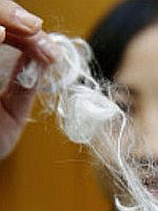 日本のバイオベンチャー企業スパイバー Spiber(山形県鶴岡市)は、鋼鉄よりも強くナイロンよりも伸縮性のある繊維「QMONOS」(クモの巣)を量産する技術を世界で初めて確立したと2013年5月25日公開した。写真は、合成クモ糸繊維製のドレスを披露する関山和秀社長=東京都港区の六本木ヒルズ 紹介映像 YOUTUBE映像