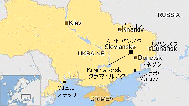 ロシア側の延期要請を無視した形で、ウクライナ東部ドネツク Donetsk及びルガンスク(ルハンスク)Lugansk(Luhansk)州では、2014年5月11日に住民投票実施を予定している。親ロ派が「ドネツク人民共和国"Donetsk People's Republic" 」を目指すドネツク州のマリウポリMariupolでは5月9日戦闘が始まり、一般市民に向けて発砲が行われているとロシア記事が報じている。