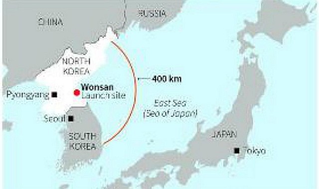 日本海まで飛行して落下し、その際高度1000キロまで上昇した。国連安全保障理事会は緊急会合を開く予定。潘基文(パン・ギムンBan Ki-moon)国連事務総長の報道官は、発射実験は北朝鮮が負っている国際的義務の「意図的かつ非常に深刻な違反」だと述べた。