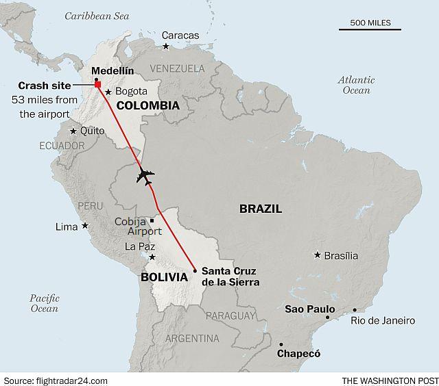 2016年12月26日:コロンビアの航空当局者は、操縦士が十分な燃料を補充しておらず、それが原因と なったエンジン不良を直前まで報告しなかったことが事故を引き起こしたと説明。チャーター機の運営会社や飛行計画を認めたボリビア航空当局にも責任がある とし、「すべては人為的ミスだ」と指摘した。ほかにも、積載貨物の重量が規定を約400キロ上回っていたほか、定められた飛行高度を守っていなかったとも明かした。参照記事