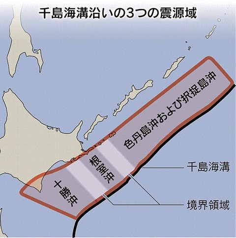 政府の地震調査委員会は2017年12月19日、北海道東部の十勝沖から択捉島沖の太平洋に横たわる千島海溝で、マグニチュード(M)9級の超巨大地震が今後30年以内に7~40%の確率で起きるとの予測を公表した。平均340~380年の間隔で繰り返してきたとみており、前回の発生から約400年が過ぎていることから「切迫している可能性が高い」とした。東日本大震災(M9.0)や南海トラフ巨大地震に加え、北海道でも海溝型地震の大きなリスクの可能性が出てきた。