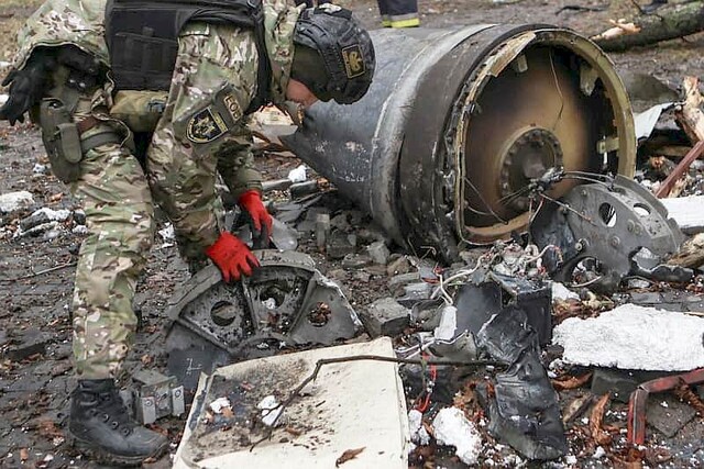北朝鮮が複数の短距離弾道ミサイルと発射装置をロシアに提供し、ロシアが使用したとの米国の発表を受け、ハリコフ州検察の報道官は2024年1月6日、ロシア軍が1月2日に撃ち込んだミサイルの一部が北朝鮮製の可能性があると記者団に説明した。ロイター通信が報じた。写真は、ロシア軍がウクライナ東部ハリコフKharkivに撃ち込んだミサイルの残骸を調べるウクライナ当局者=2日(ロイター=共同)参照記事