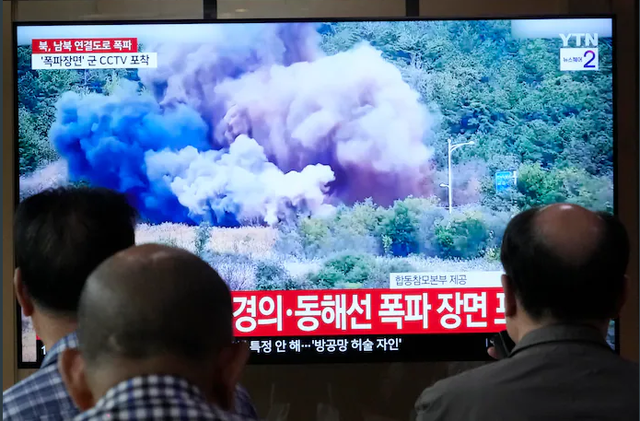 合同参謀本部は声明で、北朝鮮が同日正午ごろ、南北間をつなぐ道路と鉄道の北朝鮮側の一部区間を爆破したと明らかにした。「韓国軍は監視と即応態勢を強化している」と述べたが、それ以上の詳細は明らかにしなかった。