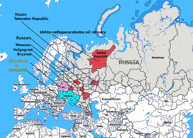 今回の爆発原因は不明だが、同州にはウクライナ軍の無人機攻撃が相次いでいる。今回の火災が攻撃によるものとの情報はまだ出ていない。一部ロシアメディアでは、製造している火薬に火が移ったとも言われている。英文記事 参照記事 この件は原因不明だが、ウクライナは、ロシア領内で広範囲に無危機攻撃で施設を破壊している。地図は、最近ウクライナが無人機攻撃した場所とリャザン州の位置。 映像 過去ブログ:2025年8月EUに無視されたトランプ氏>プーチン氏と停戦合意に至らず:8月ウクライナ、2000キロ先の石油精油所を無人機攻撃とインド: