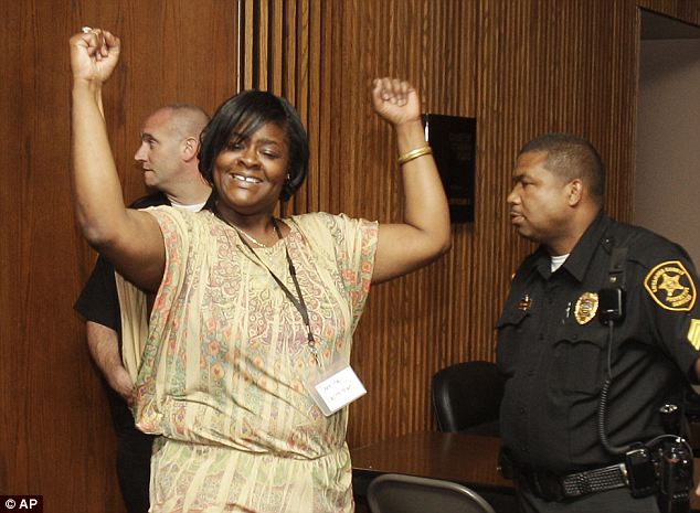 判決公判が12日、オハイオ州裁判所で開かれ、裁判官は陪審の評決通り、死刑を言い渡した。死刑執行は薬物注射による。右の写真は法廷にて。左下は、判決にガッツポーズの被害者の娘さん。犯人の不幸な生い立ちなどから、一時は無期刑の可能性もあった。参照記事