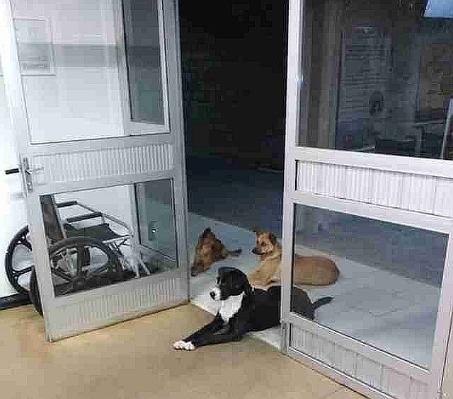 2018 年12月9日、ブラジル Rio do Sul, Brazilのアルトベール病院Hospital Regional Alto ValeにセザールCesarという名前のホームレスが入院することになった。彼が入院した際にお見舞いに来る友人は無かったが、意外な見舞客が来たと言う。それはホームレスの友だちだった野良犬たちだった。病院のドアの前に4匹の犬が立っておりホームレスのこと